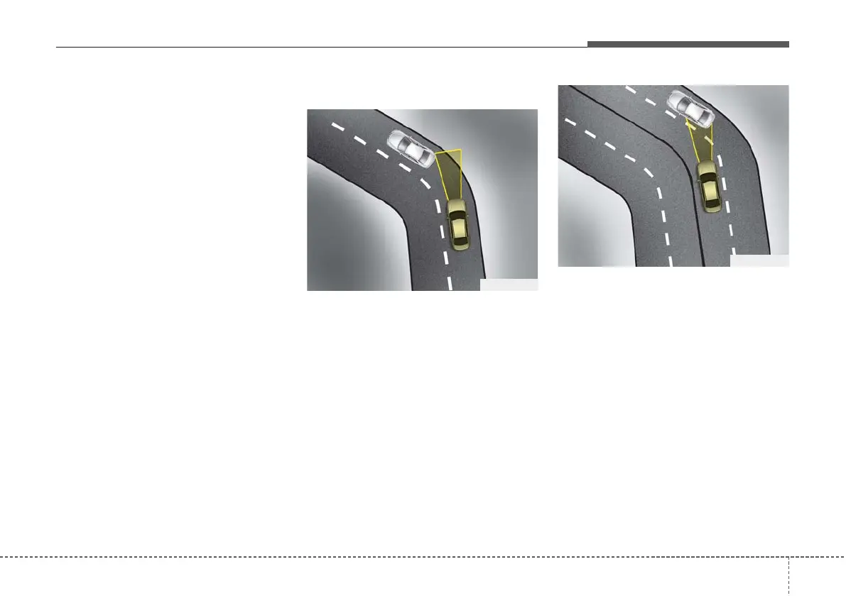 • On curves, the smart cruise control
