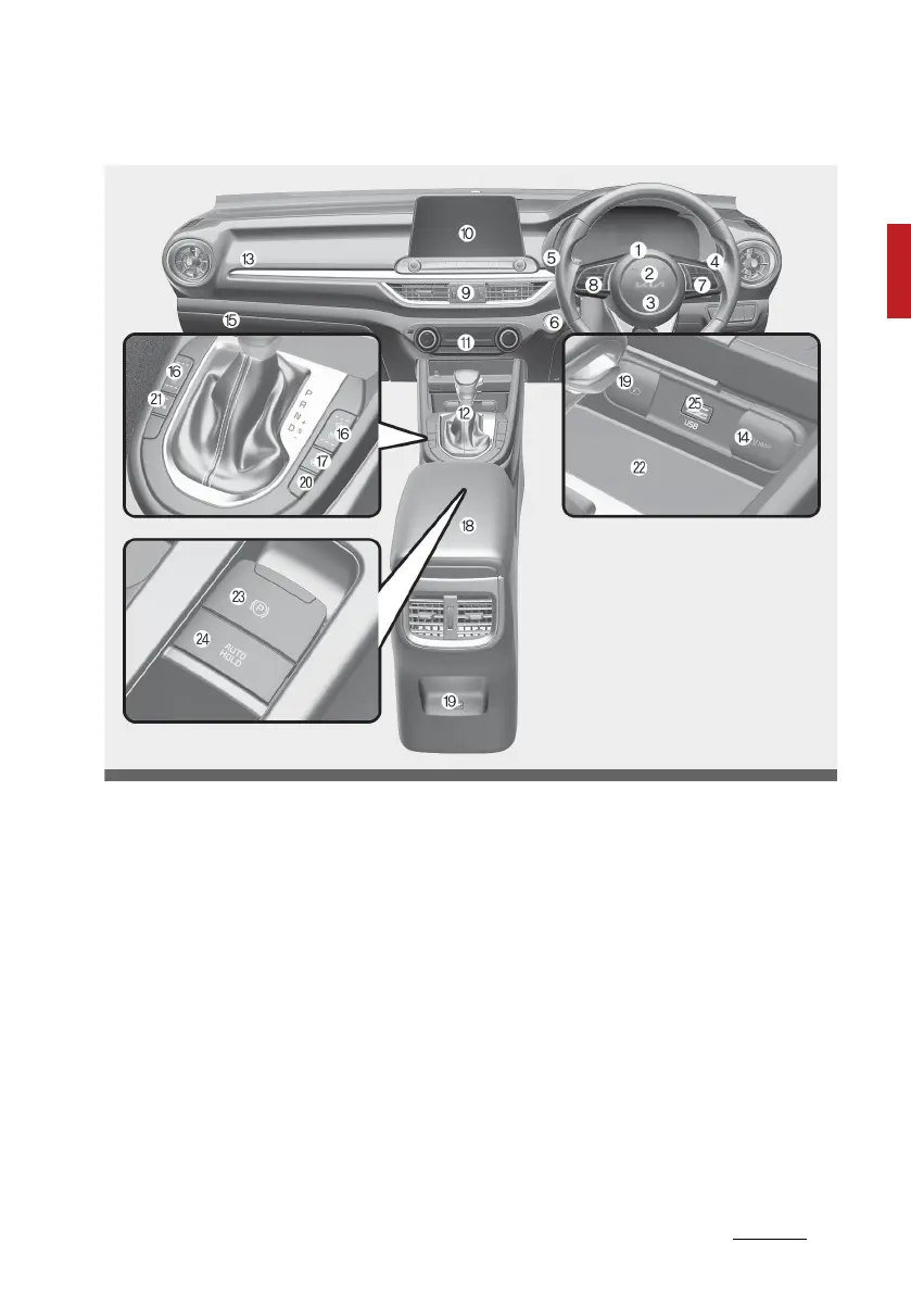 6. Ignition switch or ENGINE START/STOP button 6-9, 6-13