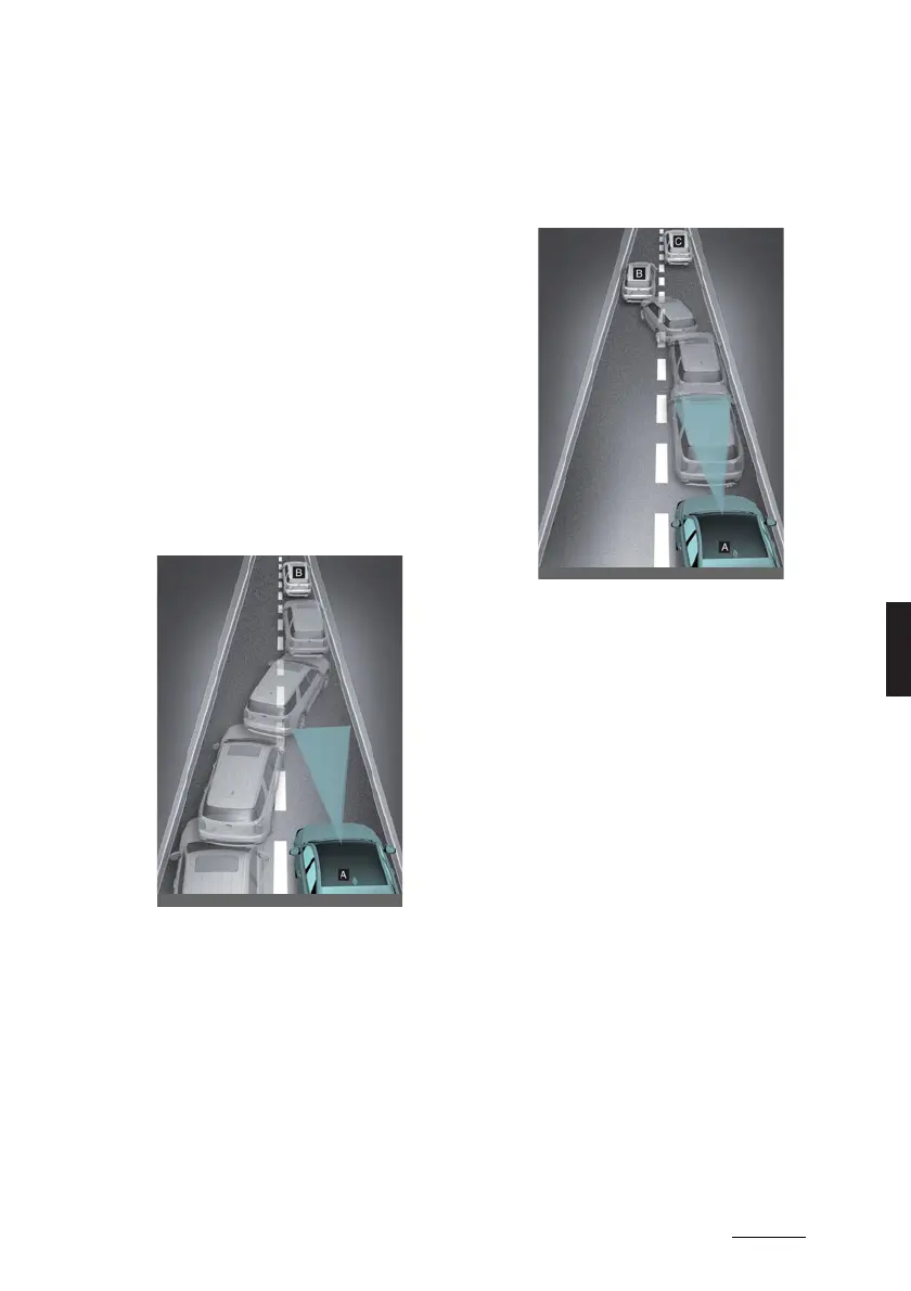 [A]: Your vehicle, [B]: Lane changing