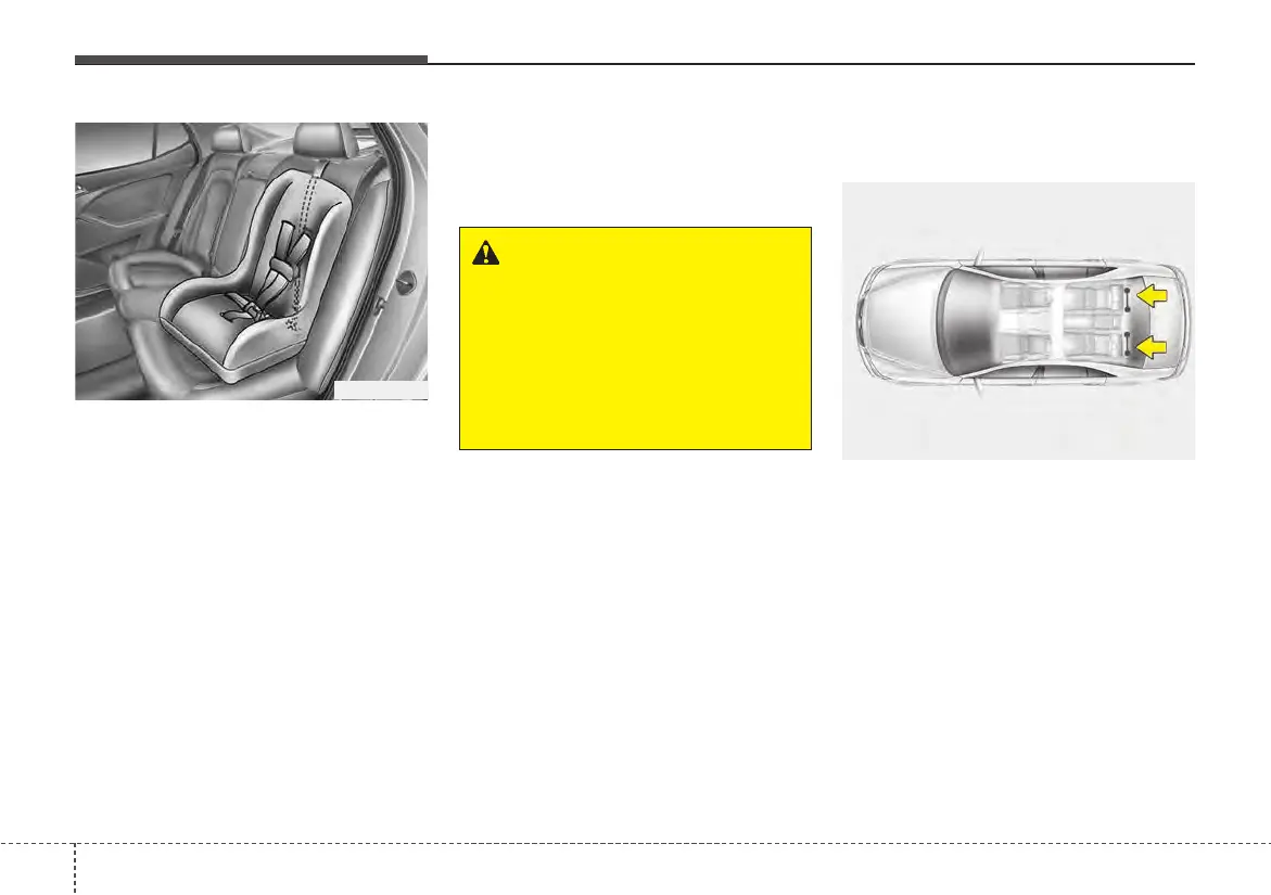 1.Route the child restraint seat teth-