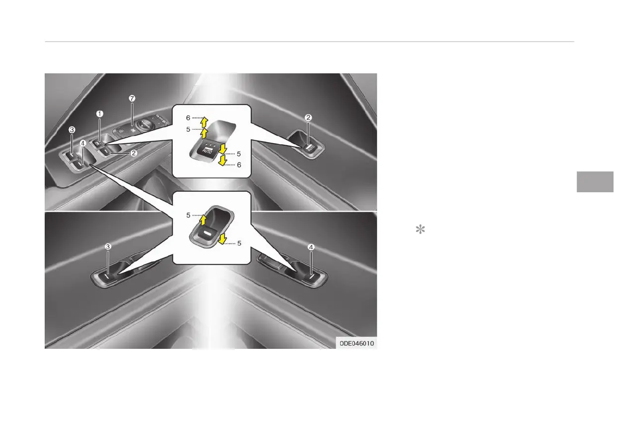 2. Front passenger's door power win‐