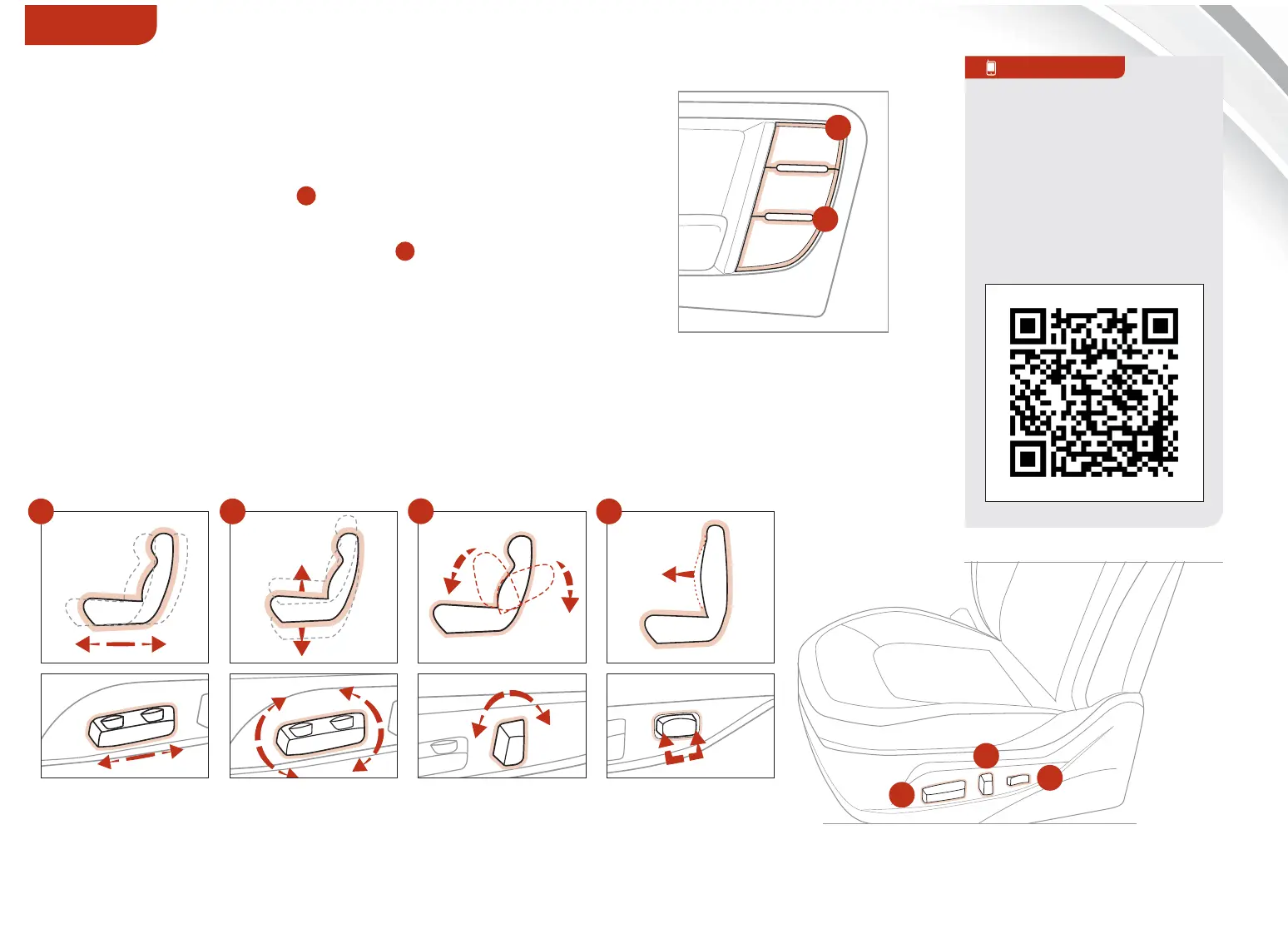 Move/Press controls to adjust Seat forward/backward, Seat Cushion, Seatback or Lumbar