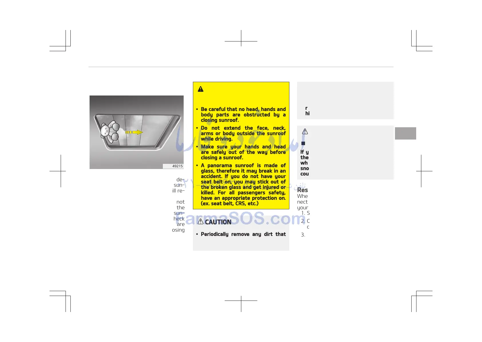 arms or body outside the sunroof