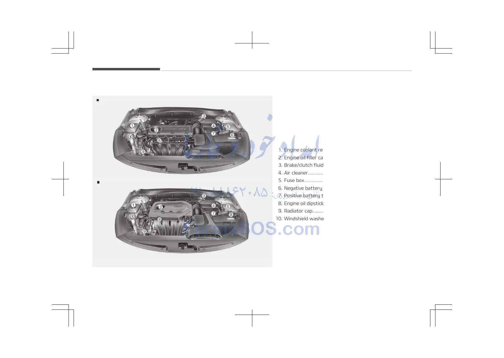 1. Engine coolant reservoir.......................................... p. 8-49