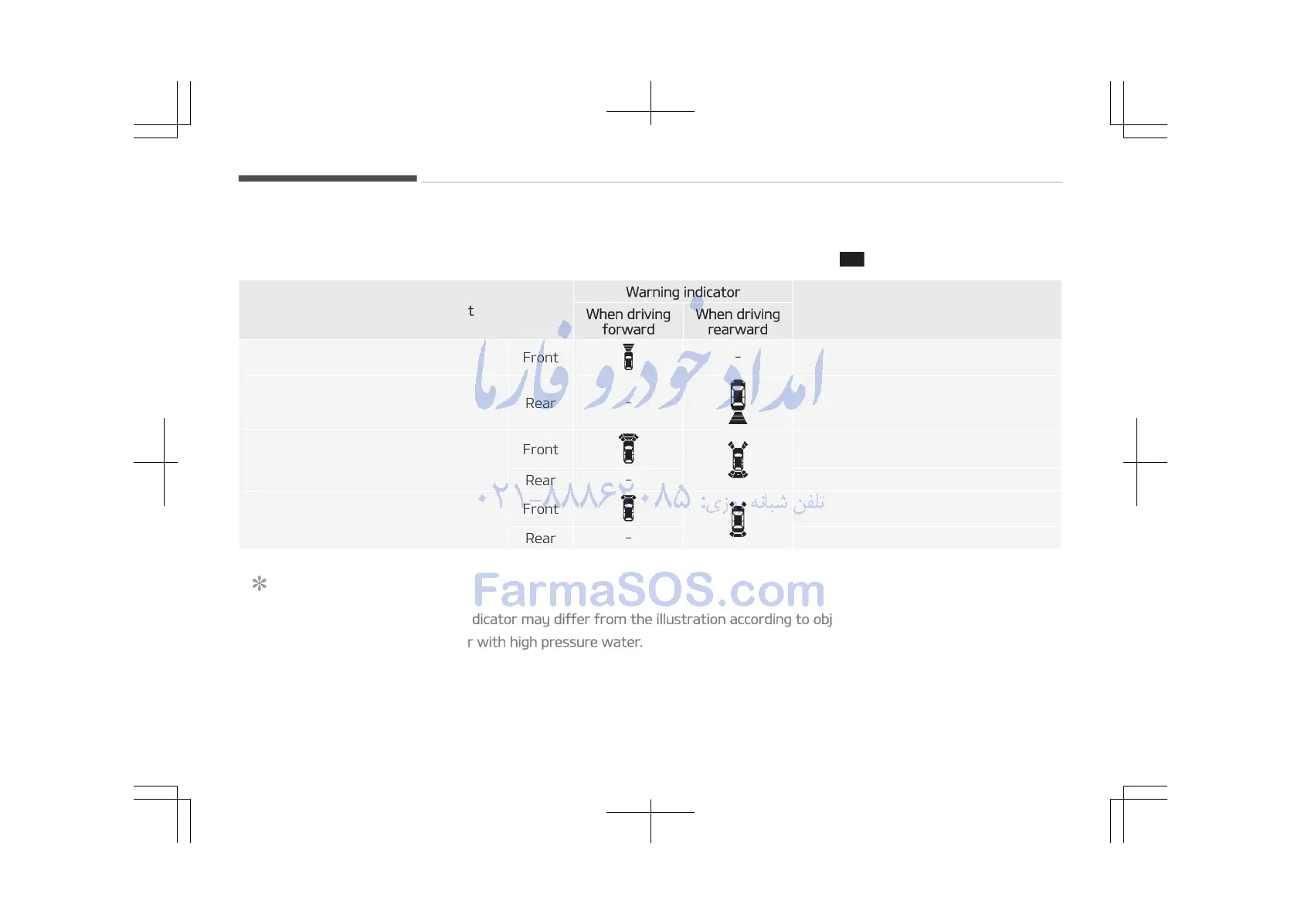 • The actual warning sound and indicator may differ from the illustration according to objects or sensor status.