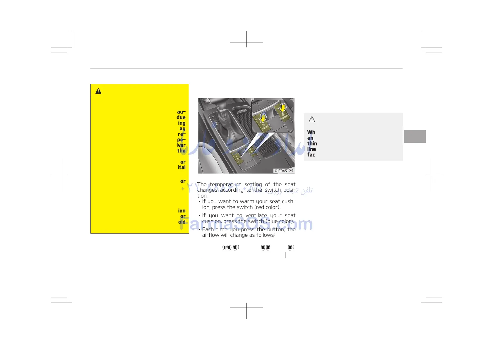 • If you want to warm your seat cush‐
