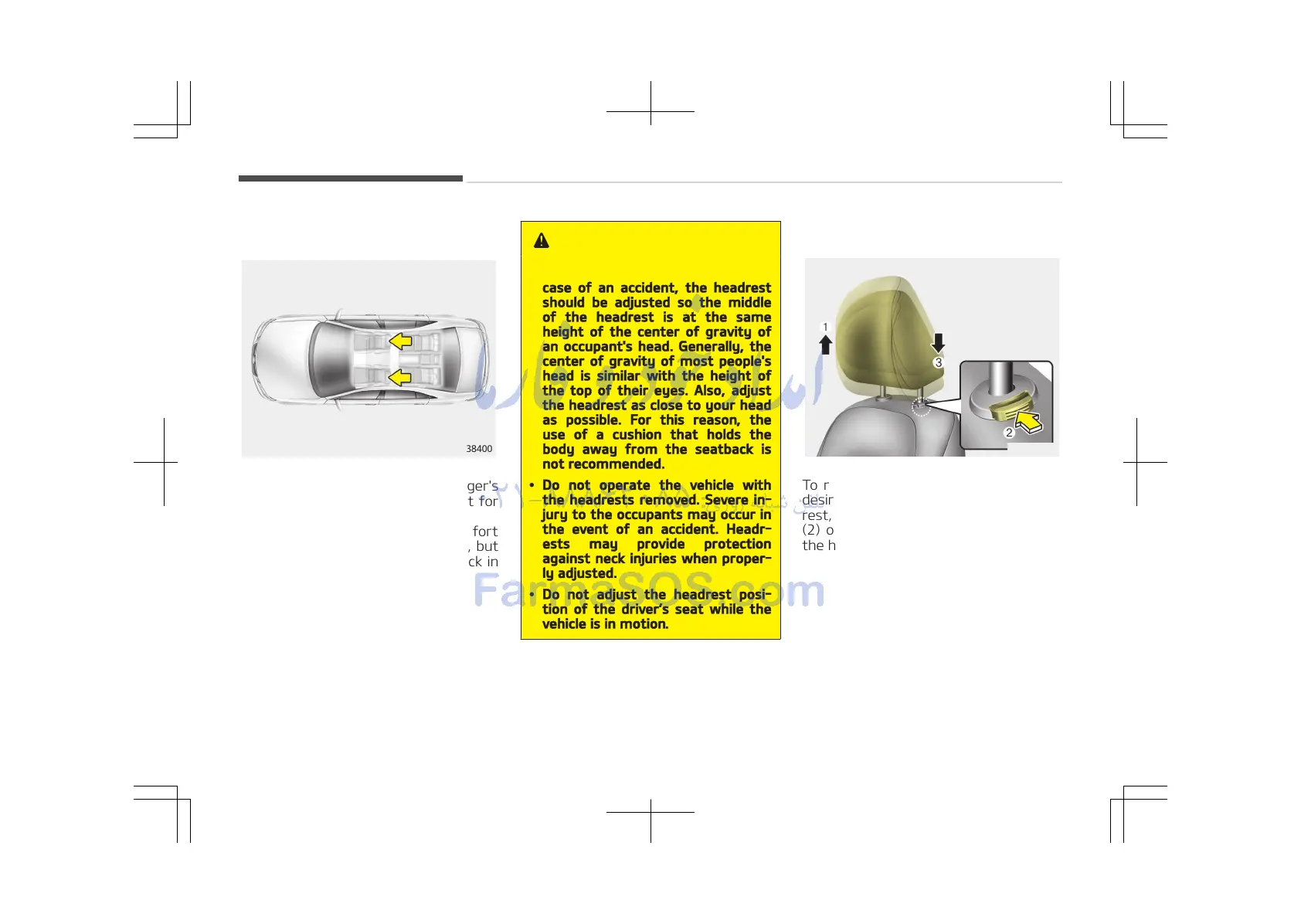 • Do not adjust the headrest posi‐