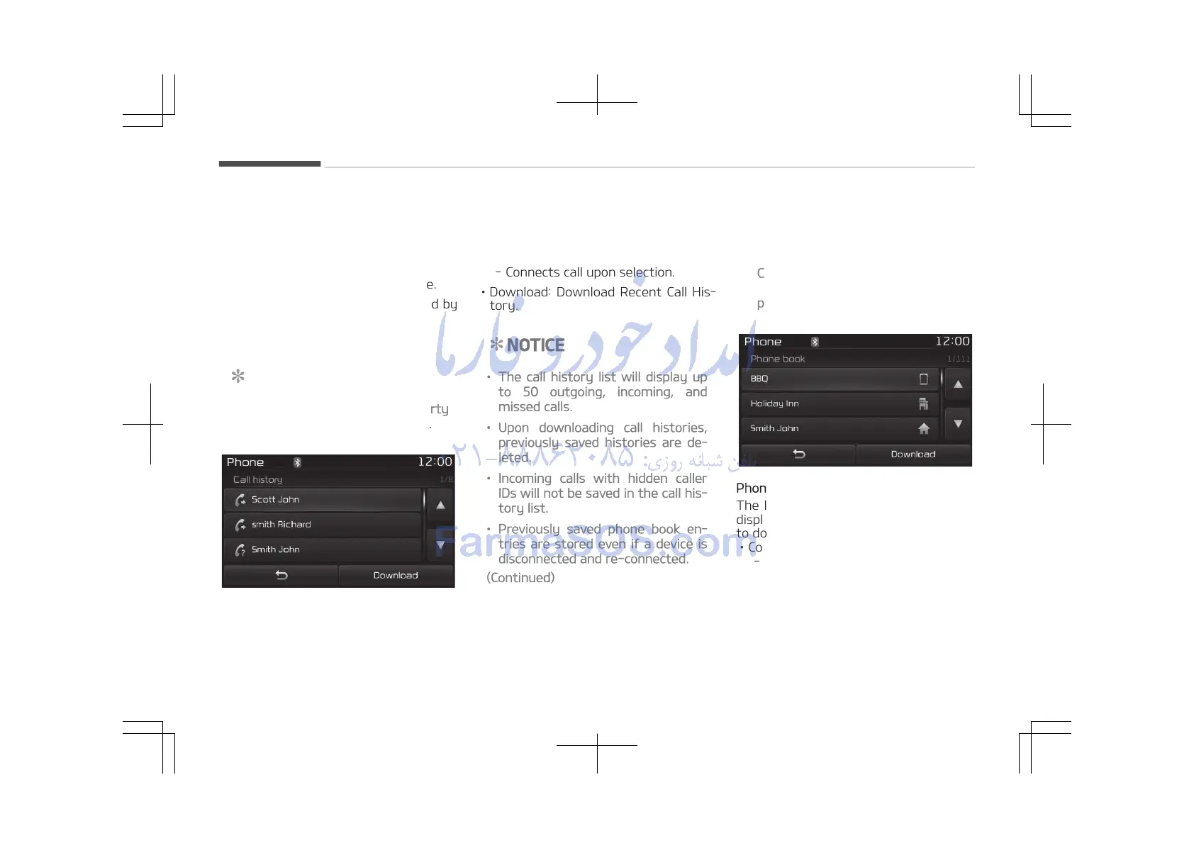 - Displays downloaded phone book