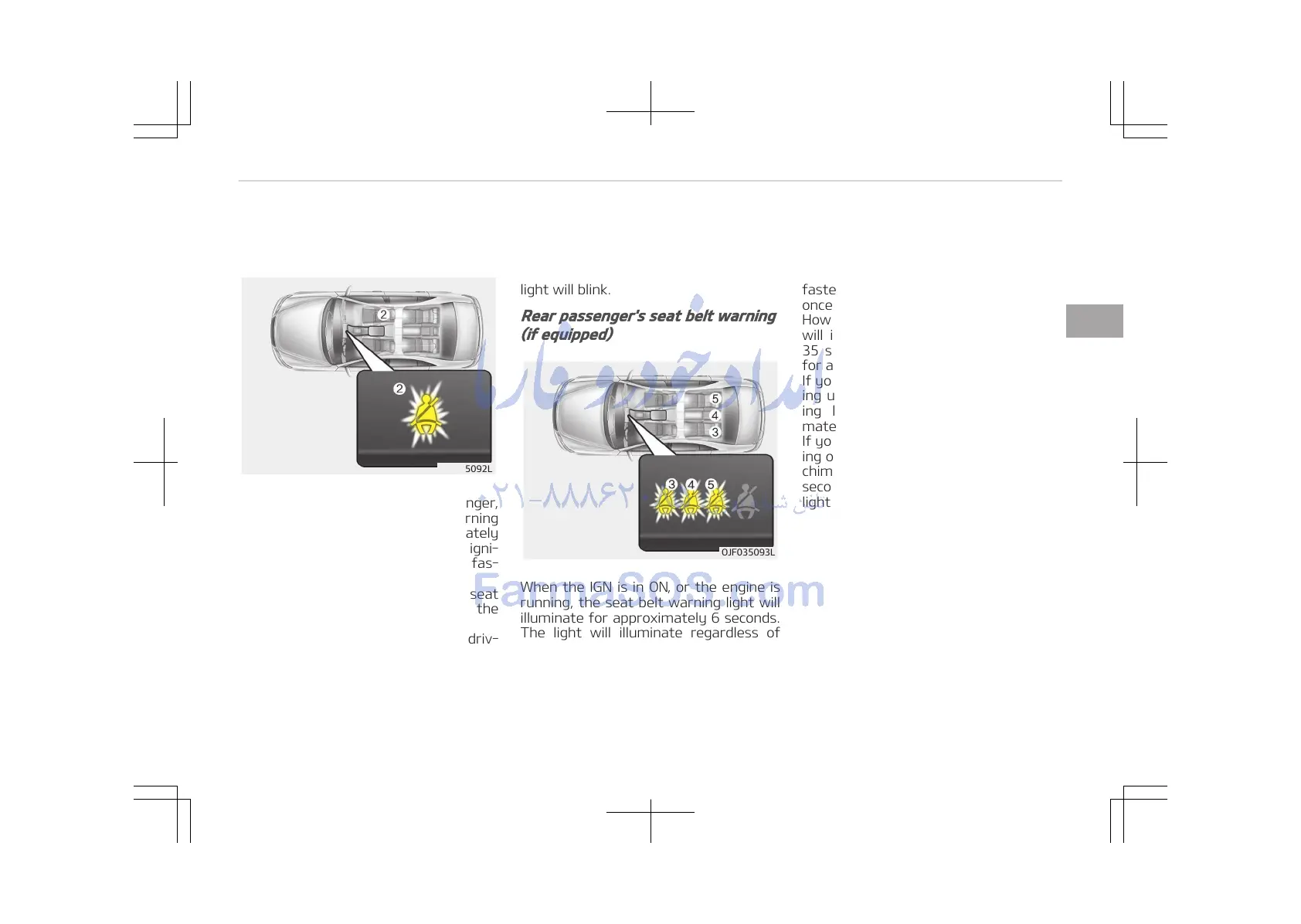 belt warning light will illuminate for ap‐