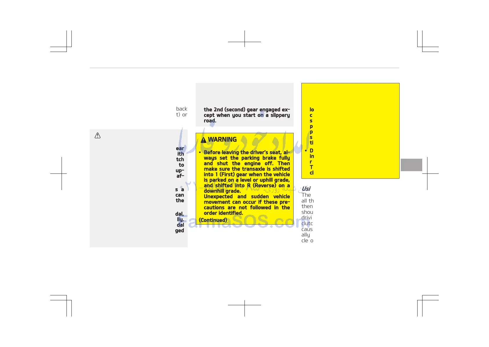 sary wear. Use the foot brake or park‐