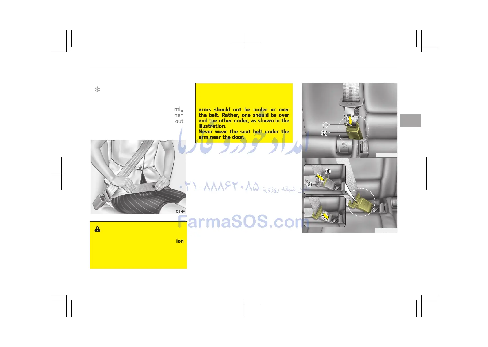 Never wear the seat belt under the