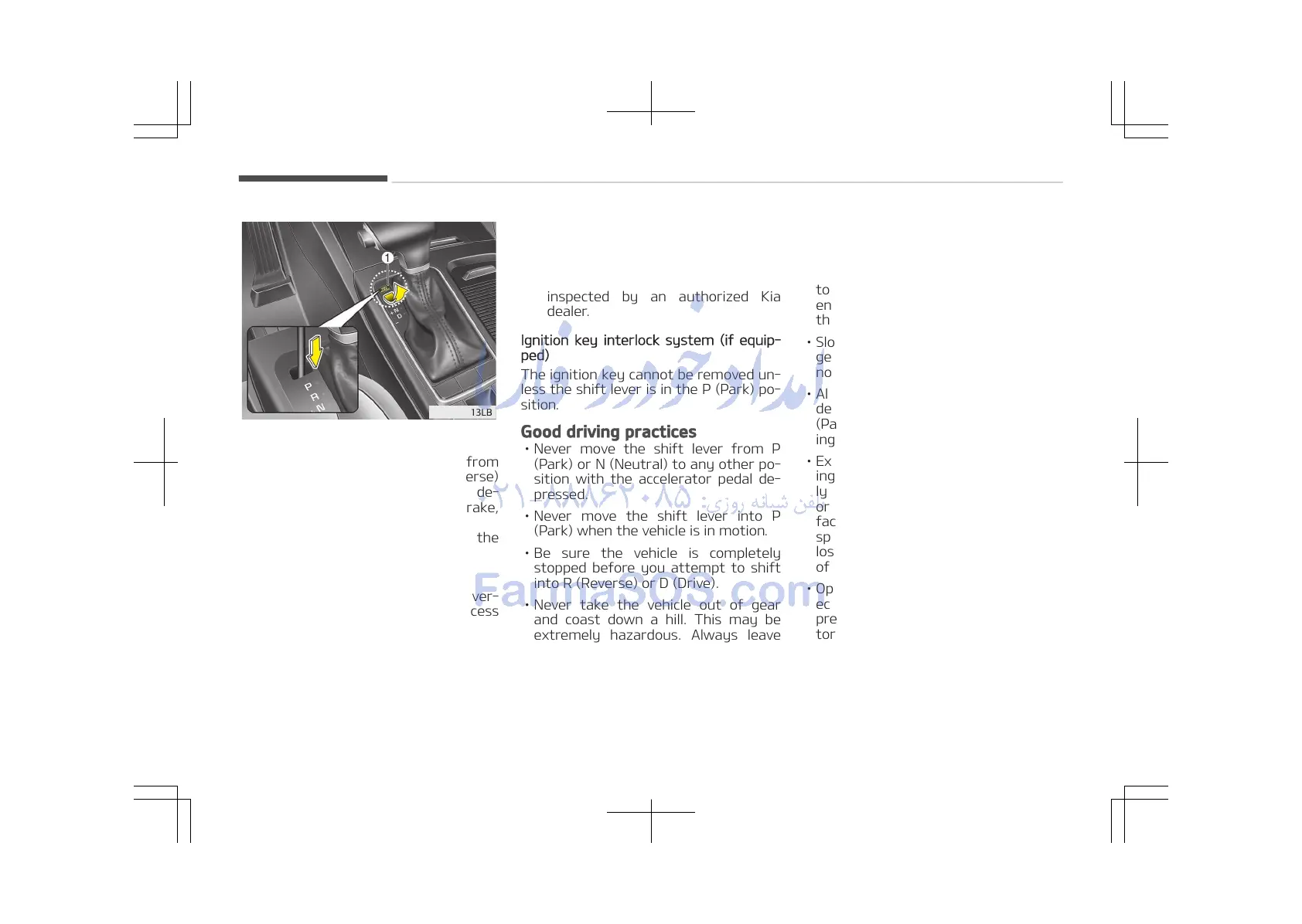 (Park) when the vehicle is in motion.