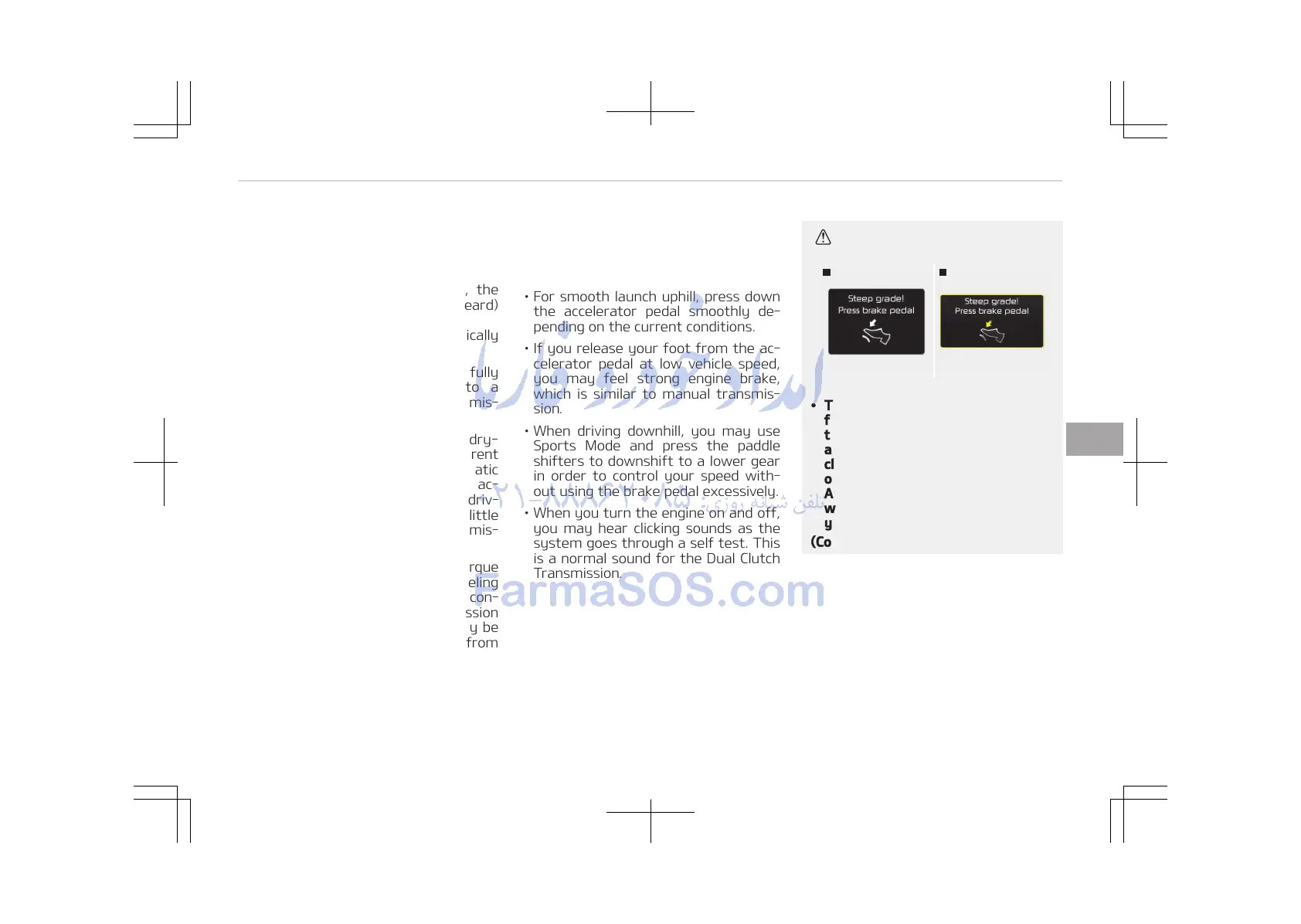 • To hold the vehicle on a hill use the