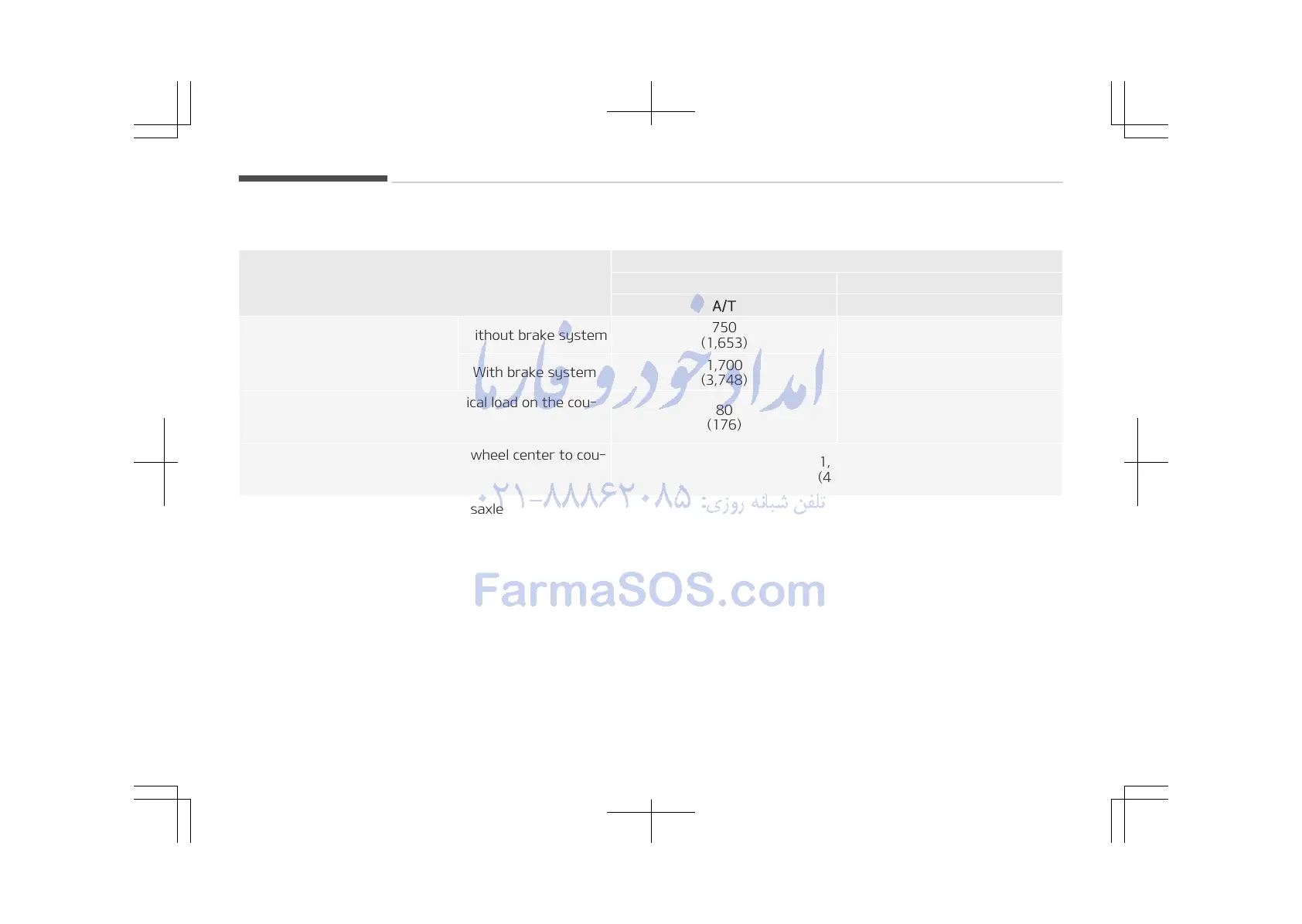 Kia Optima 2017 - Loading Capacity of the Trailer Towing (for Australia)