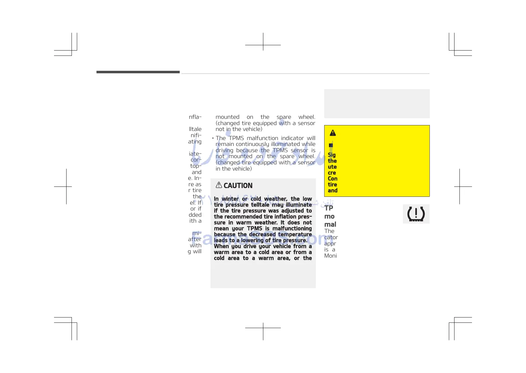 • The TPMS malfunction indicator may