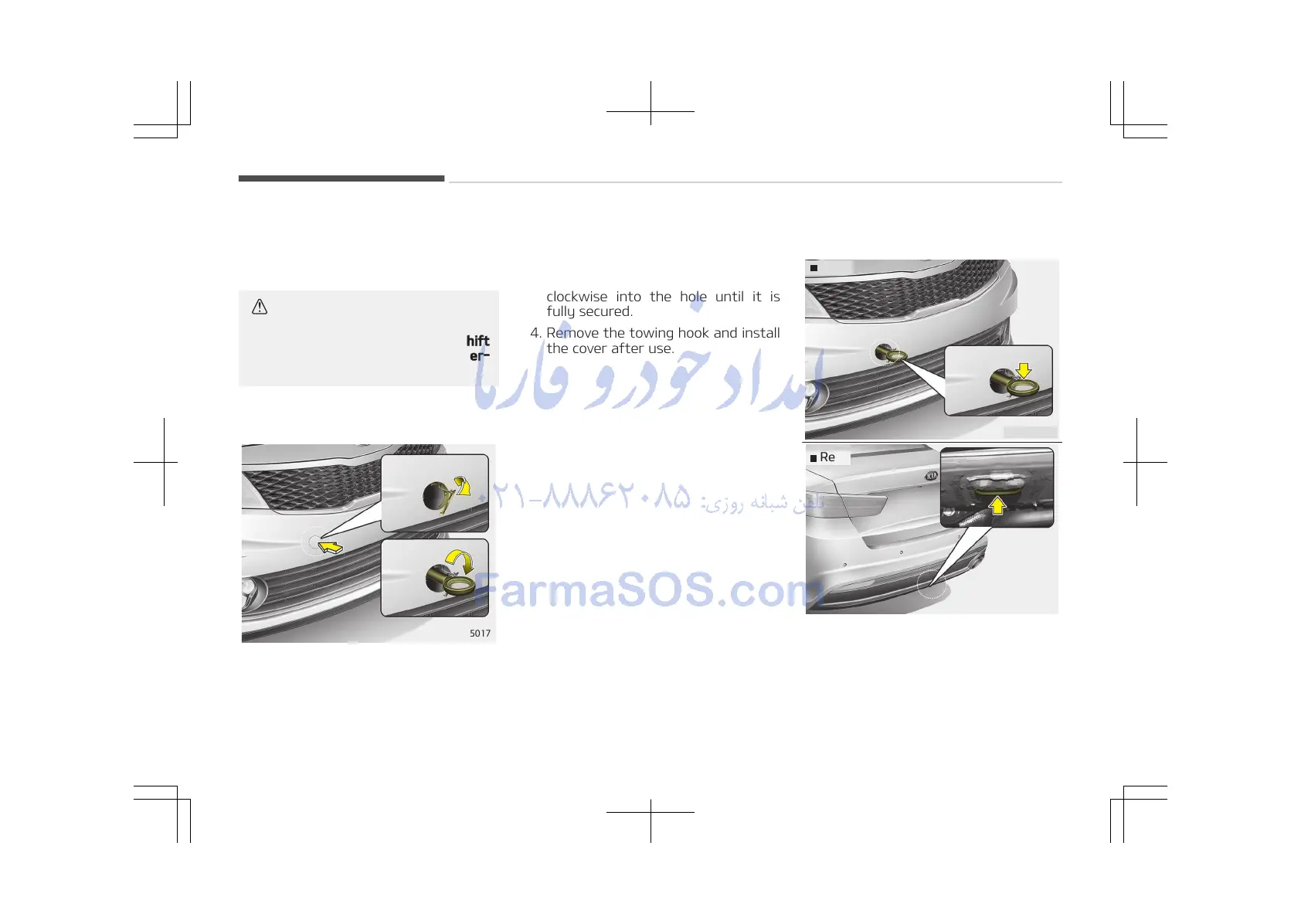 3. Install the towing hook by turning it