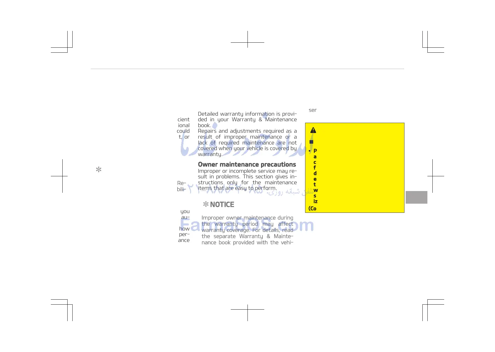 Owner maintenance precautions