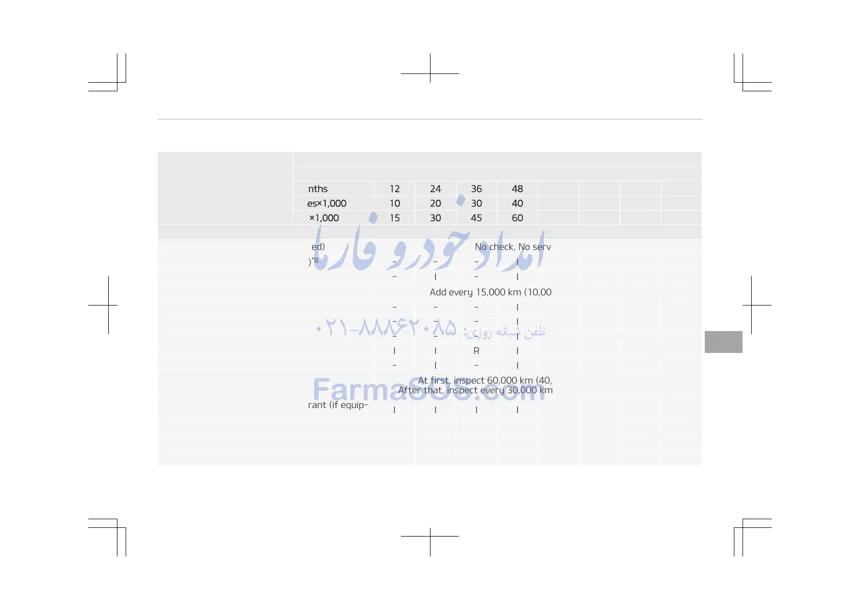 At first, inspect 60,000 km (40,000 miles) or 48 months