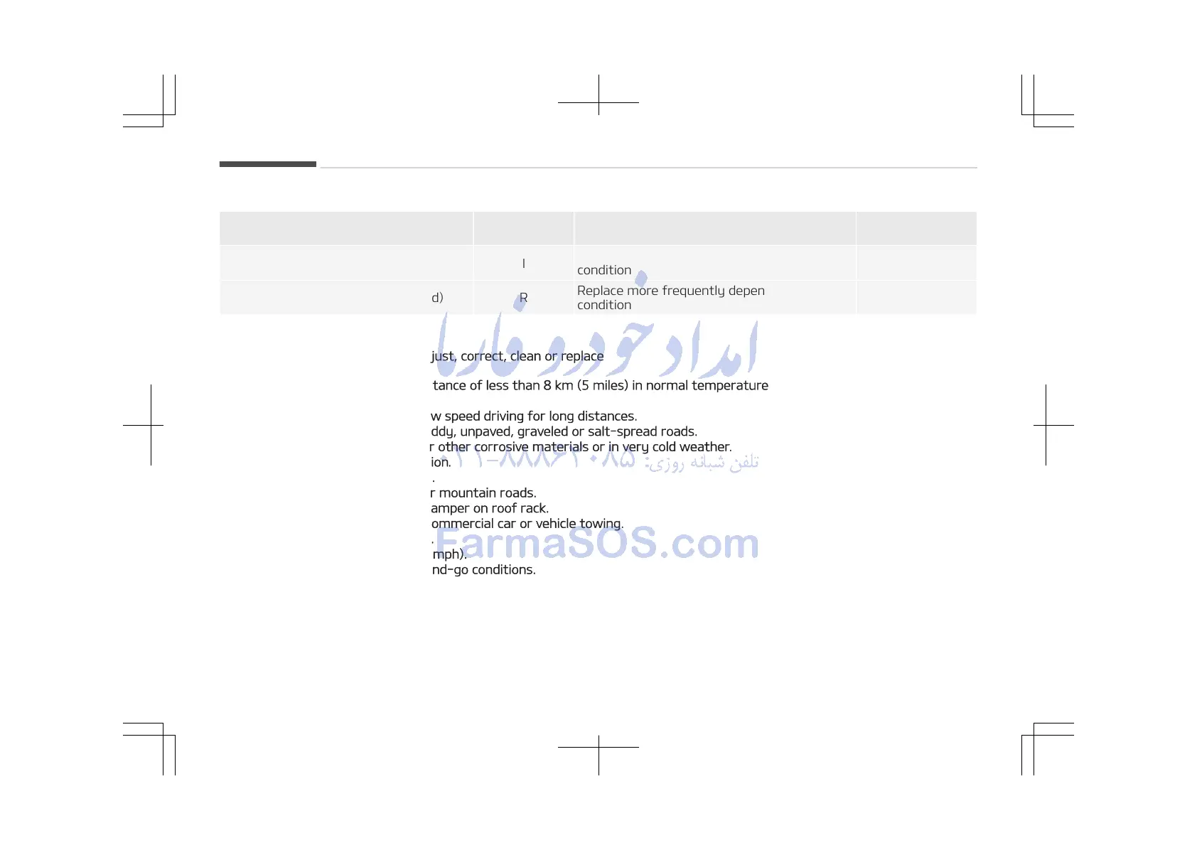 A: Repeatedly driving short distance of less than 8 km (5 miles) in normal temperature or less than 16 km (10 miles) in