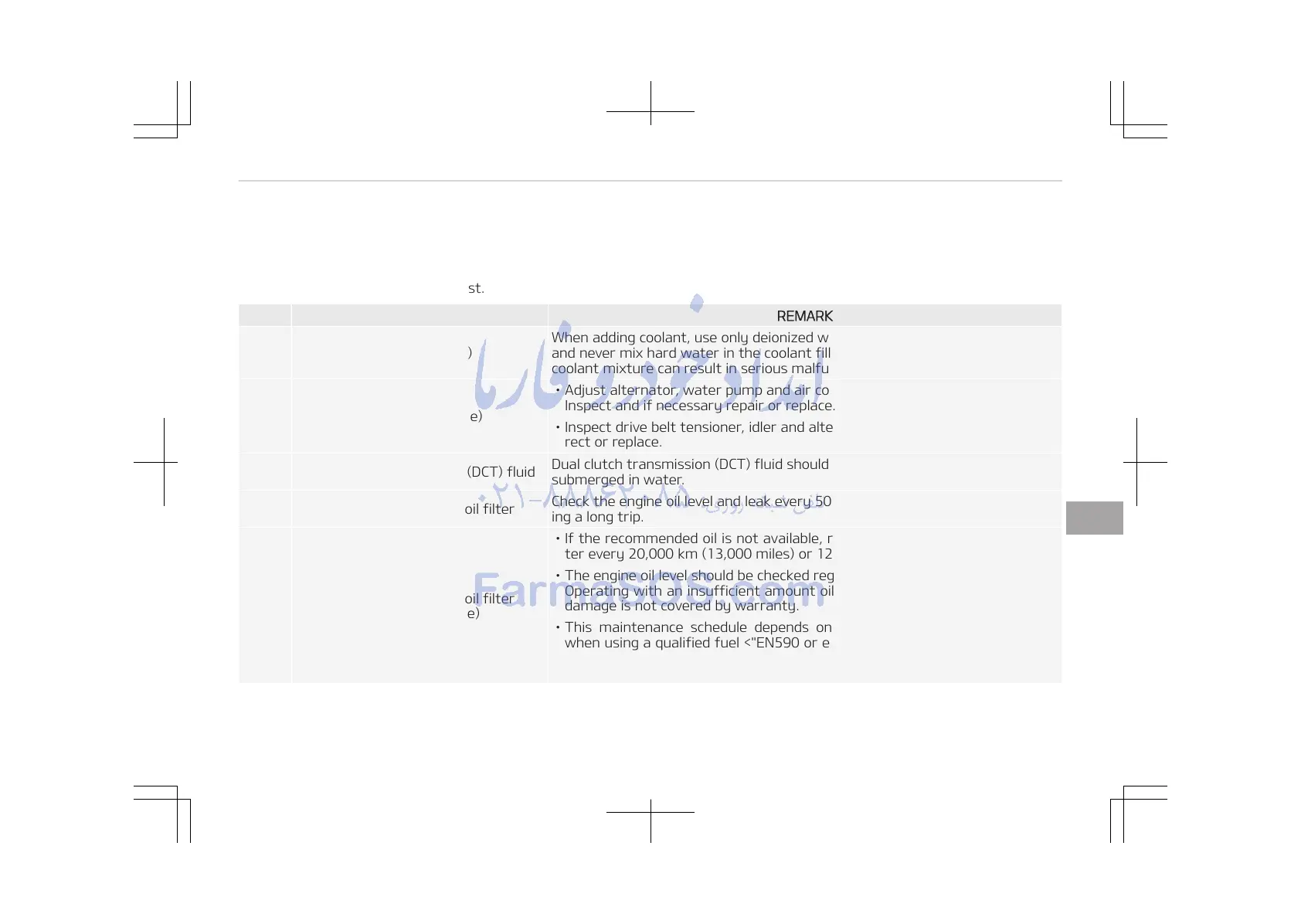 • This maintenance schedule depends on fuel quality. It is applicable only