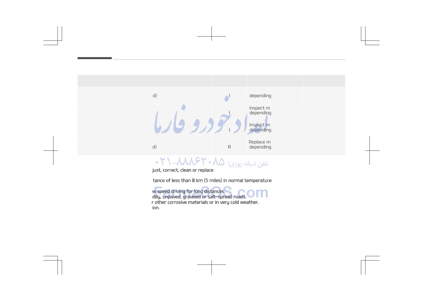 Maintenance intervals Driving condition