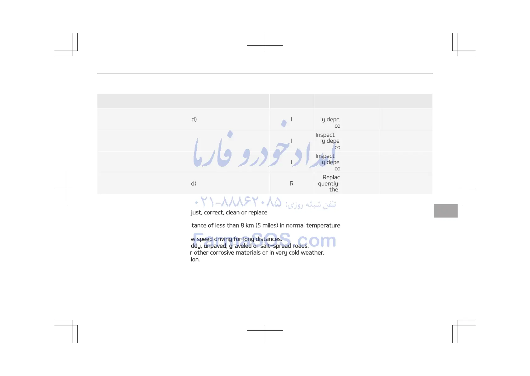 A: Repeatedly driving short distance of less than 8 km (5 miles) in normal temperature or less than 16 km (10 miles) in