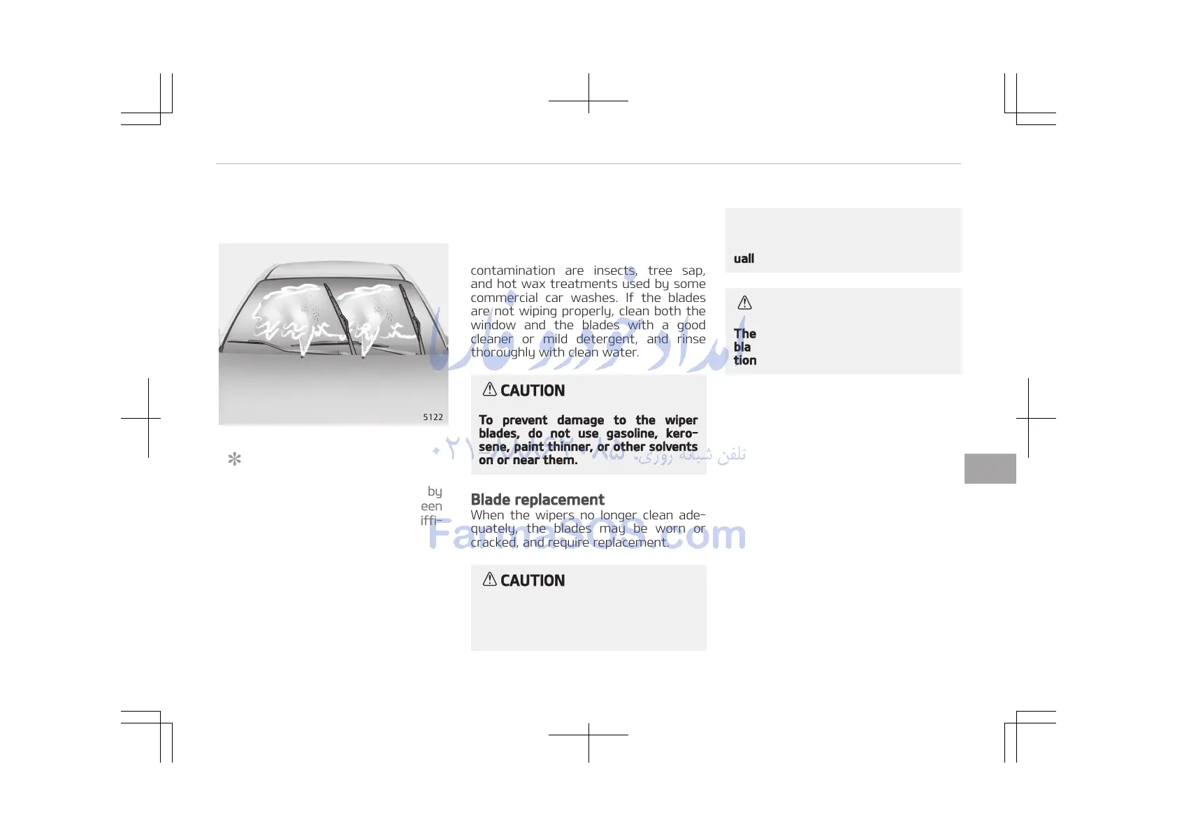 blade could result in wiper malfunc‐