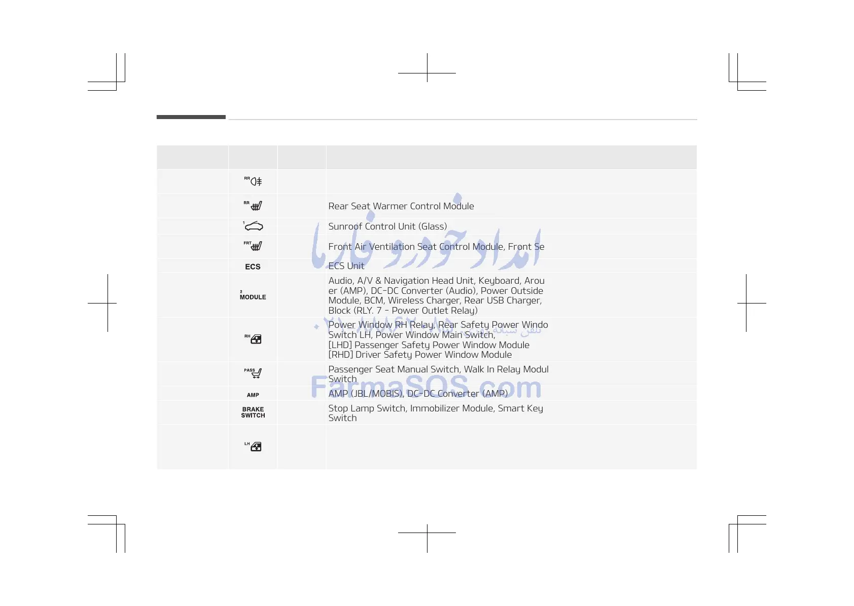 Module, BCM, Wireless Charger, Rear USB Charger, MTS E-Call Module, E/R Junction
