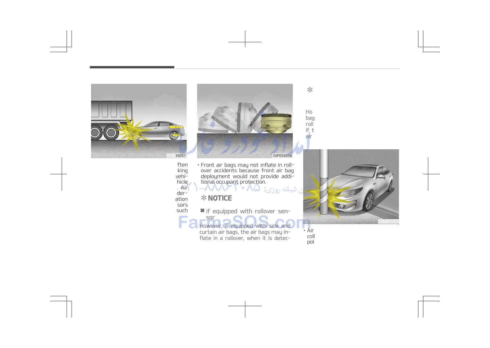 • Front air bags may not inflate in roll‐