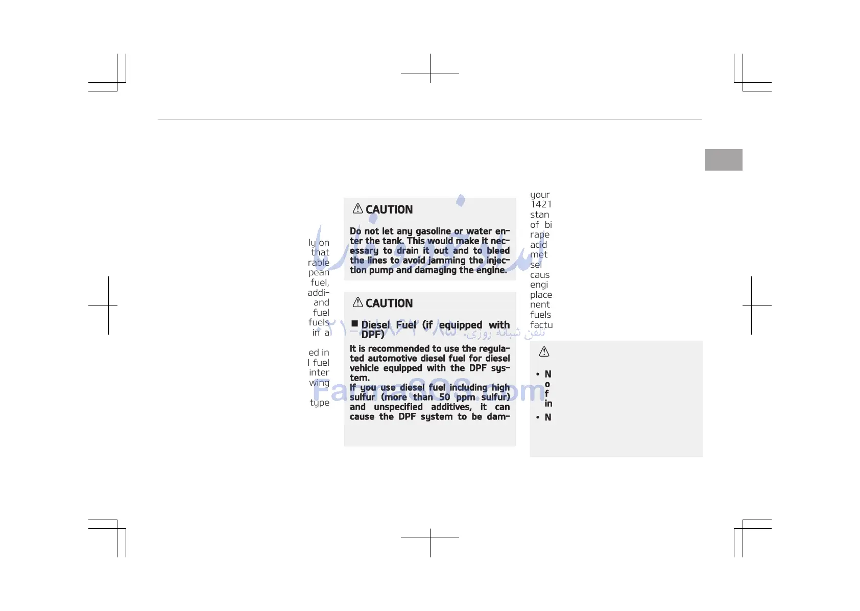 • Never use any fuel, whether diesel