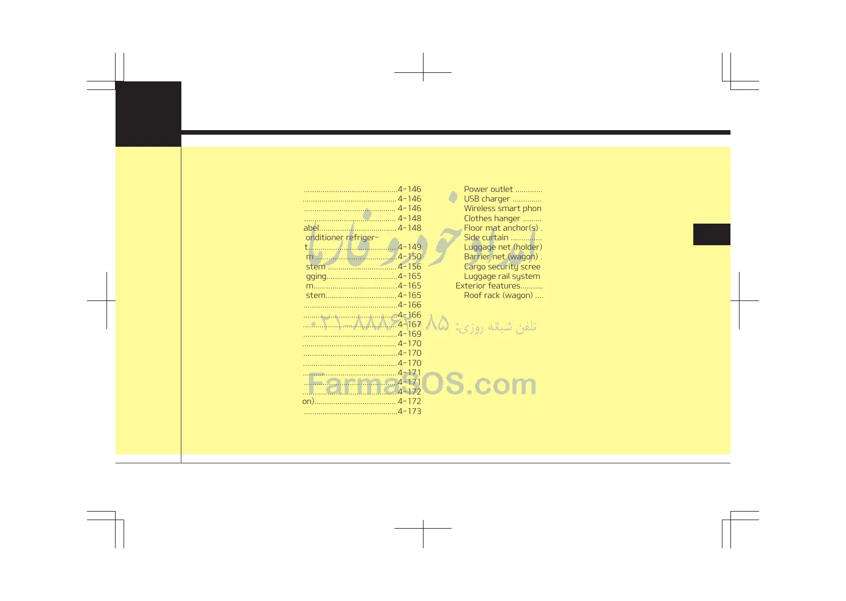 Luggage rail system (wagon)........................................... 4-187
