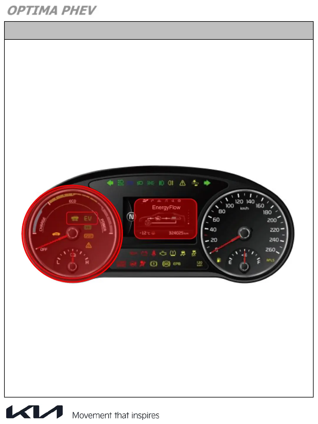 OPTIMA plug-in hybrid Cluster Instrument Panel displays the PHEV specific
