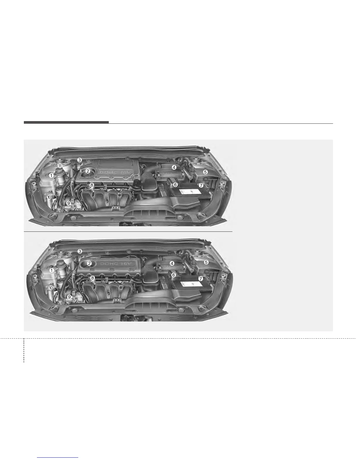 ❈ The actual engine compartment in the vehicle may differ from the illustration.