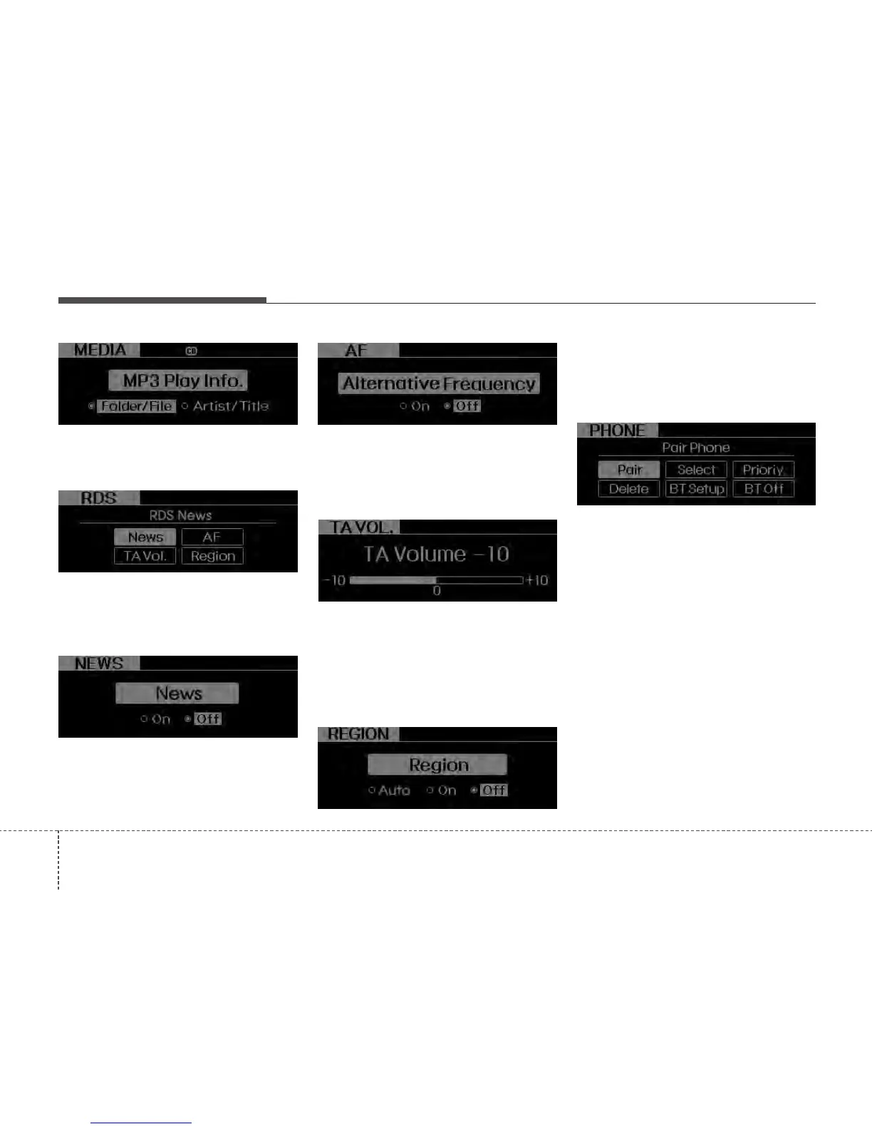RDS menu includes News/AF/Region/TA