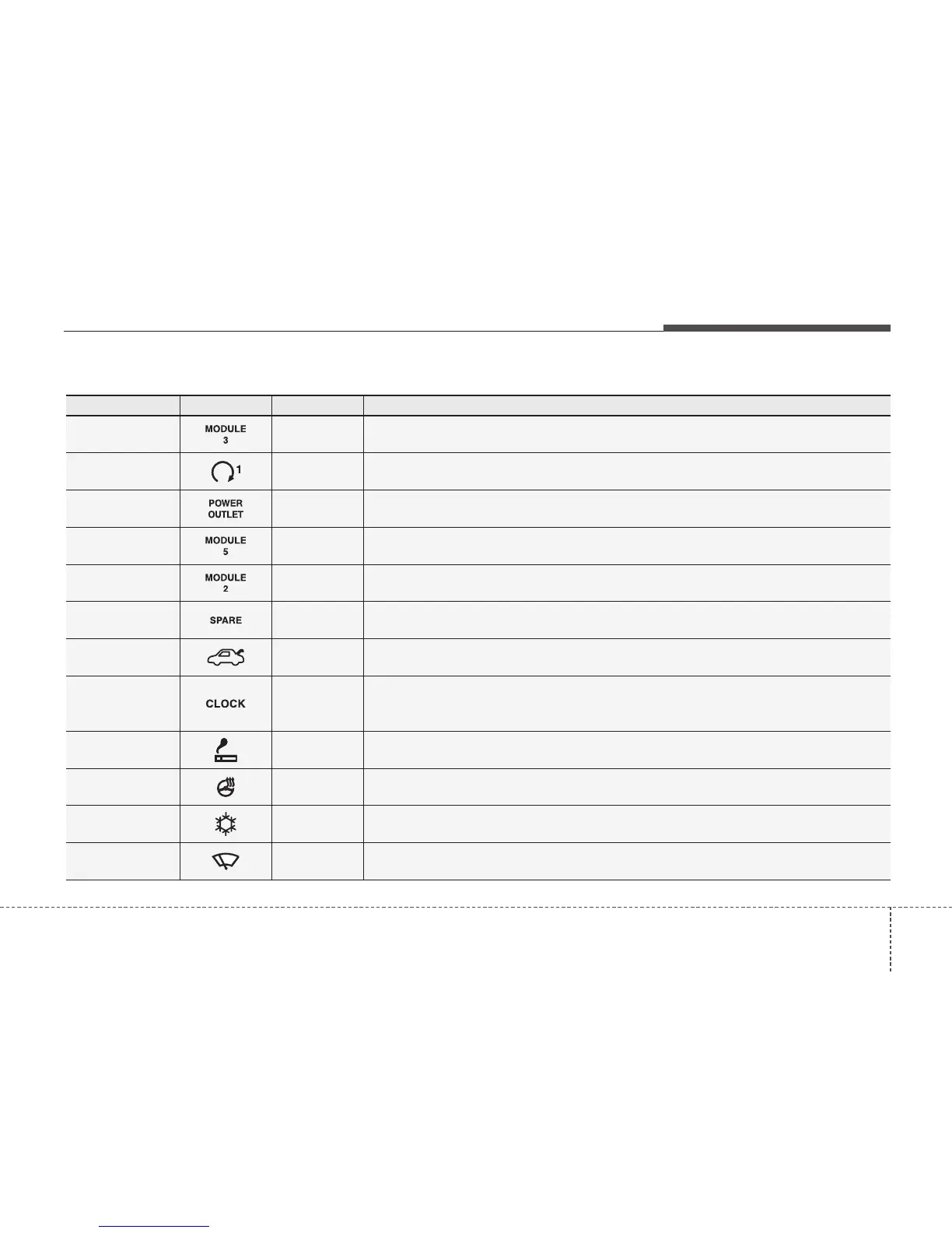 Fuse Name Symbol Fuse rating Protected Component