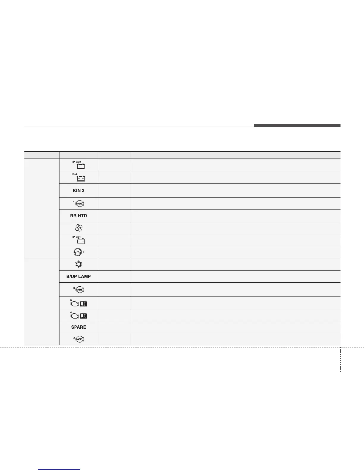 Symbol Fuse rating Protected Component
