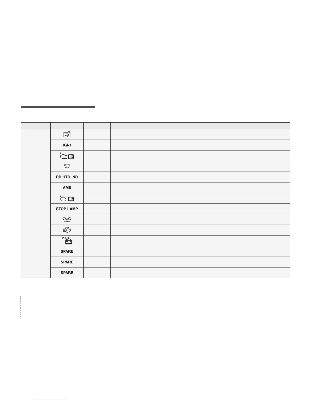 Symbol Fuse rating Protected Component