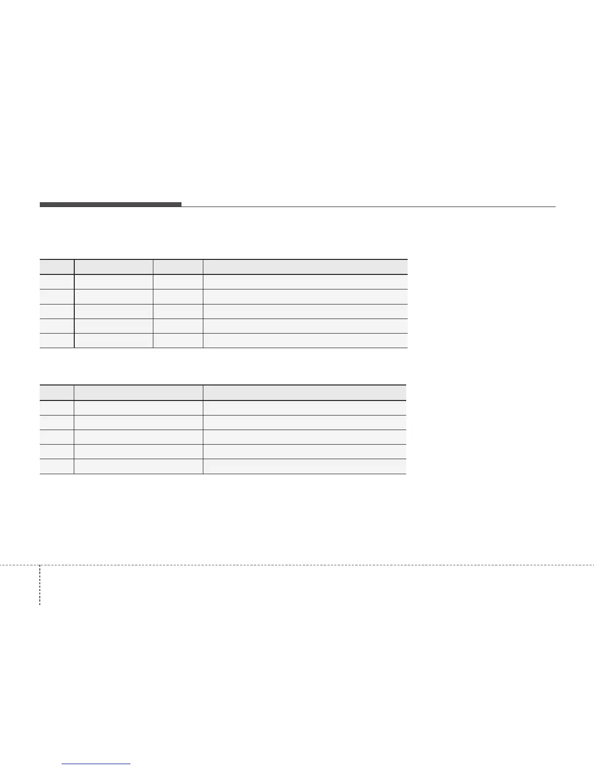 No. Fuse Name Fuse rating Protected component