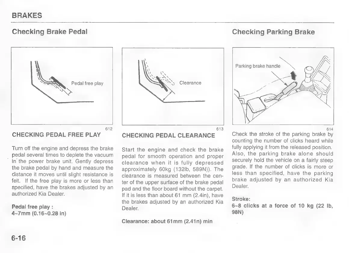 Kia pride 1997 - Checking Brake Pedal; Checking Parking Brake