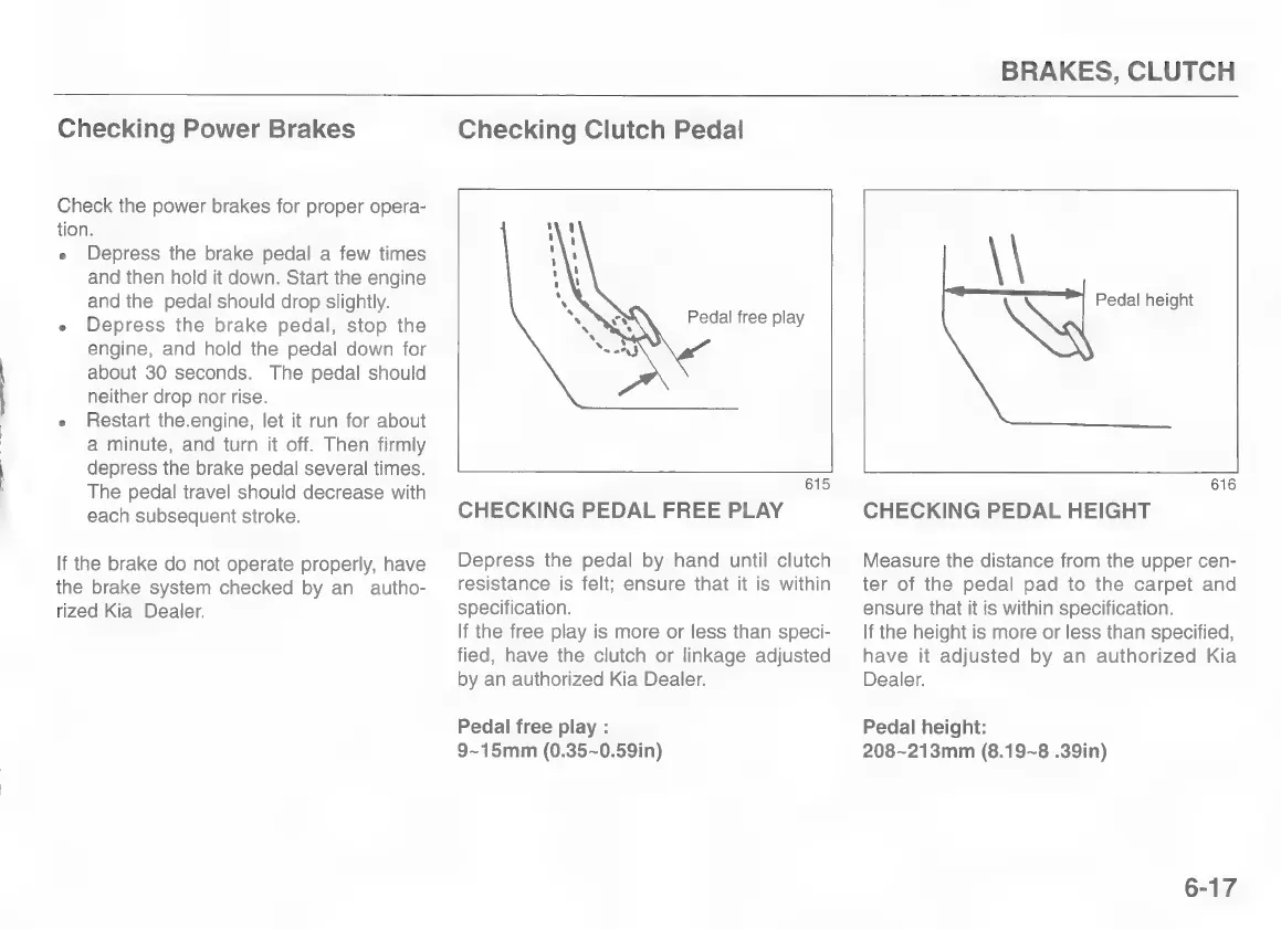 Kia pride 1997 - Brakes, Clutch; Checking Pedal Height
