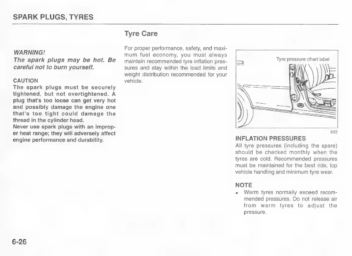 Kia pride 1997 - Tyre Care; Inflation Pressures
