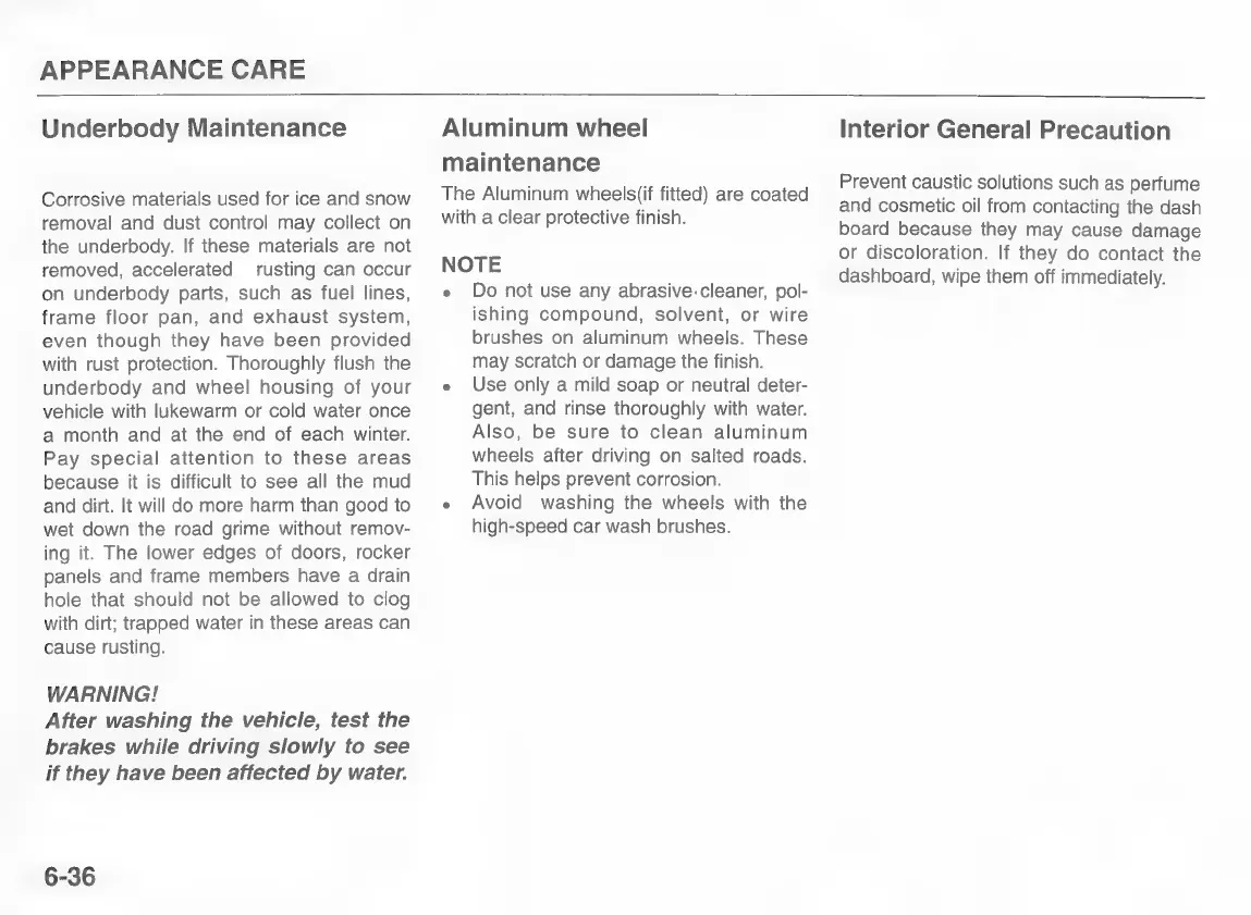 Kia pride 1997 - Underbody Maintenance; Aluminum Wheel Maintenance
