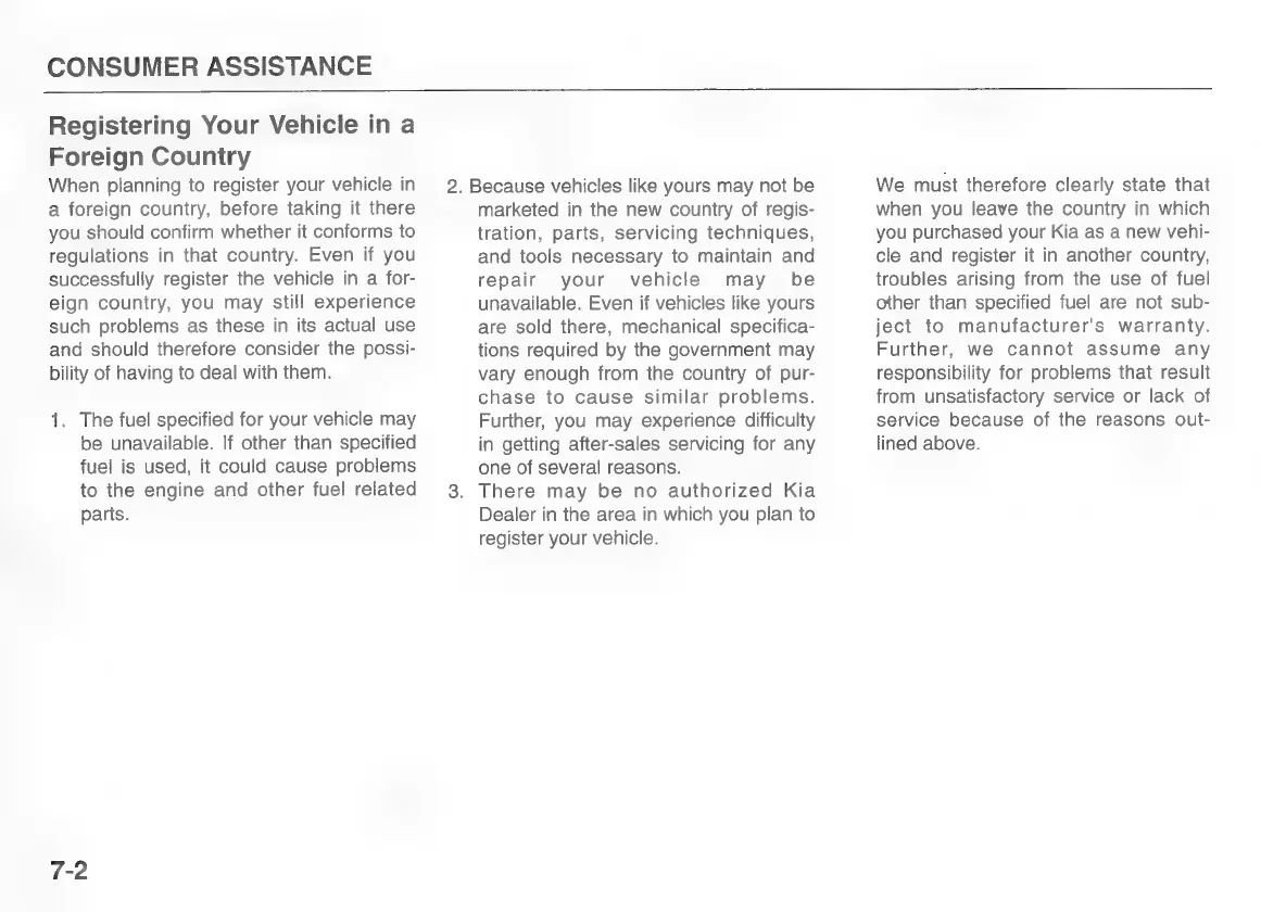 Kia pride 1997 - Consumer Assistance; Registering Your Vehicle in a Foreign Country