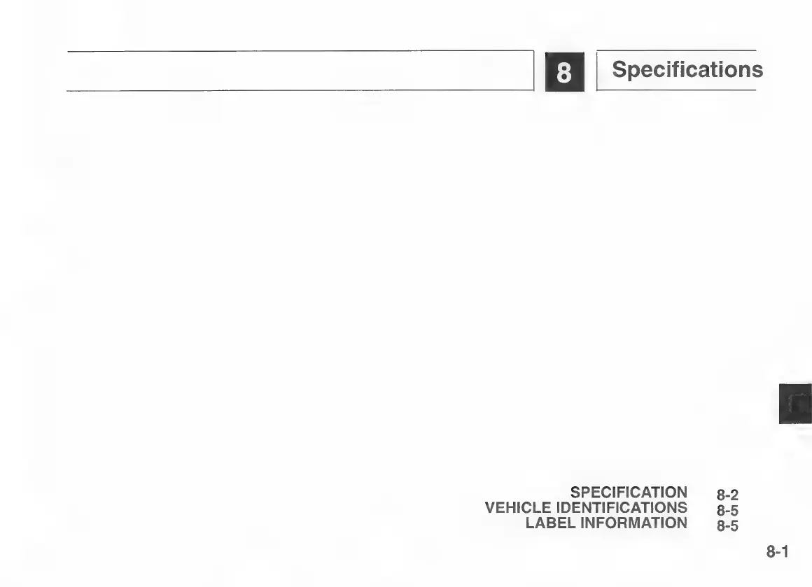 Kia pride 1997 - Specifications; Specification; Vehicle Identifications