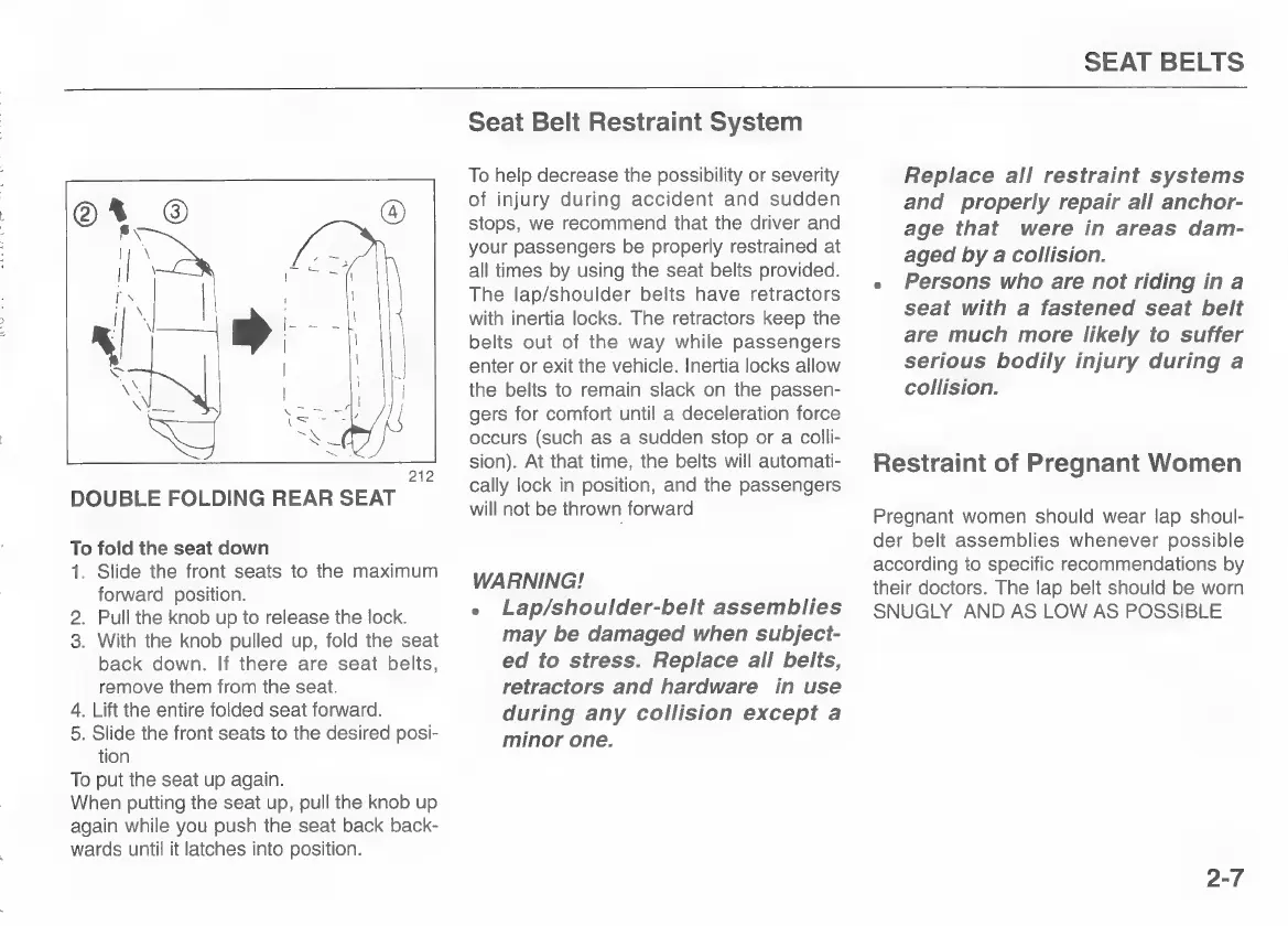Kia pride 1997 - Seat Belt Restraint System; Restraint of Pregnant Women