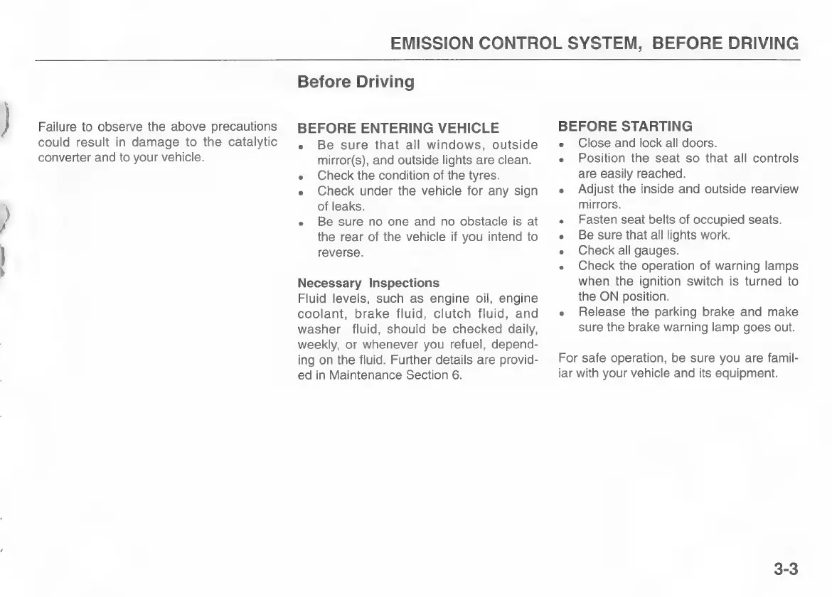 Kia pride 1997 - Emission Control System; Before Driving