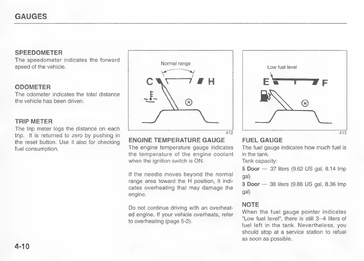 Kia pride 1997 - Engine Temperature Gauge; Fuel Gauge