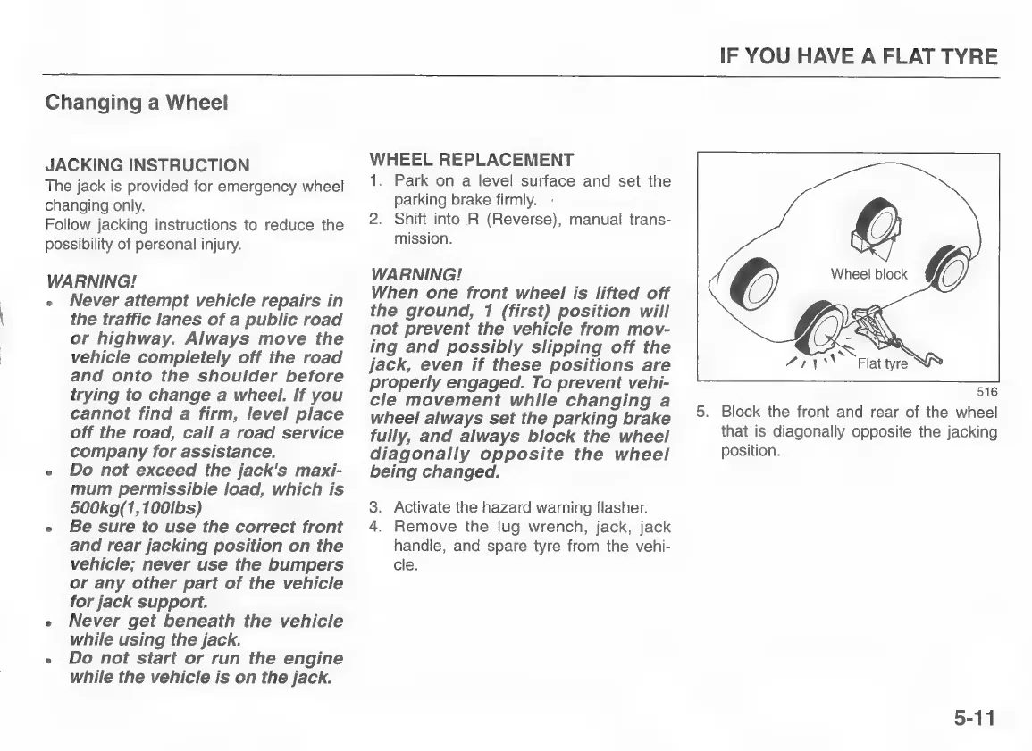 Kia pride 1997 - Changing a Wheel; Wheel Replacement