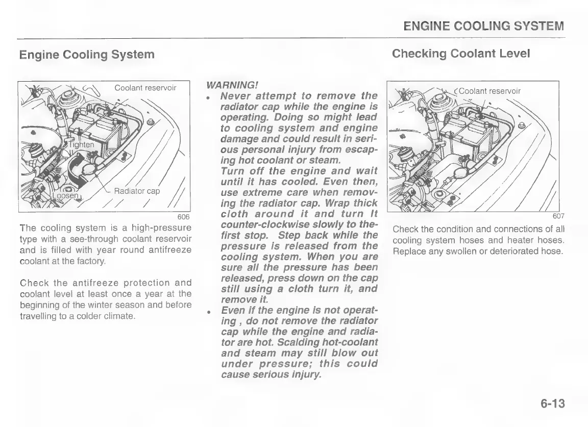 Kia pride 1997 - Engine Cooling System; Checking Coolant Level