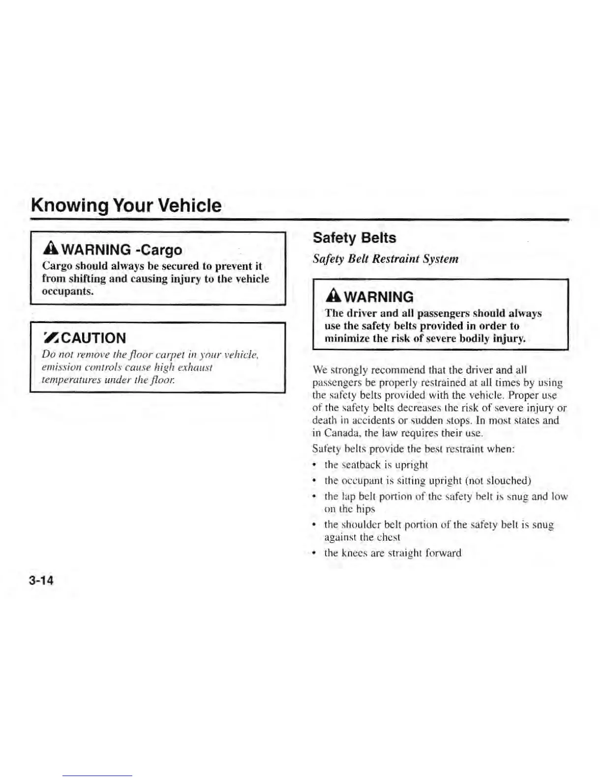 Kia Rio 2001 - Safety Belts; Safety Belt Restraint System